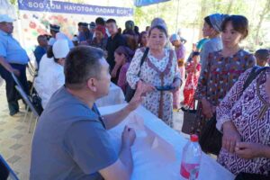 Кўрикдан ўтказилган жами 608 нафар фуқаронинг 61 нафарида сурункали касалликлар аниқланиб, босқичма-босқич туман шифохонасида, 9 нафарига эса вилоят шифохоналарида даволаниш учун йўлланма берилди. 3 нафар беморда юқори технологияли операция ўтказиш белгиланди. 172 нафар бемор амбулатор даволанишга йўналтирилди.